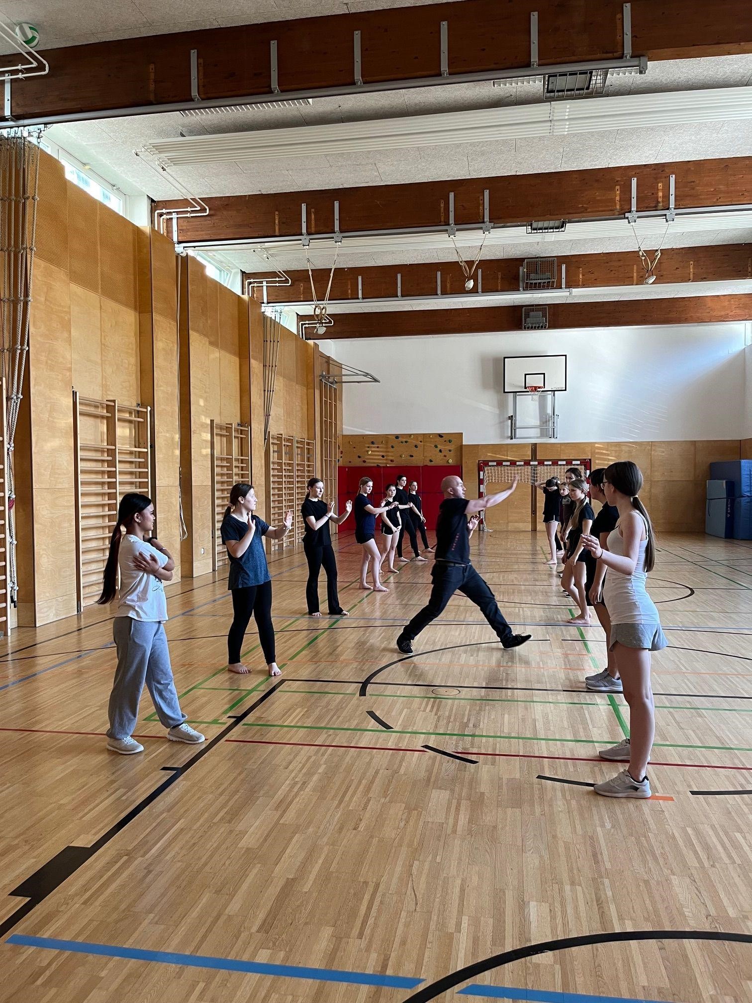 Mittelpunkt des Selbstverteidigungskurses im Rahmen des Sportunterrichts für die